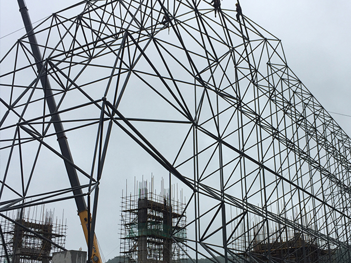 4.满堂脚手架是最有利的 螺栓球网架通辽施工平台,它在确保通辽施工安全的同时,又能承当部分网架重量,有效防止网格下沉变形,以及调整网架安装过程中的误差积累和支座与预埋件之间的偏离。